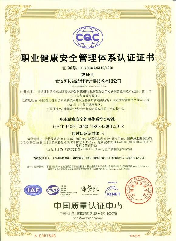 职业健康安全管理体系认证证书ISO45001