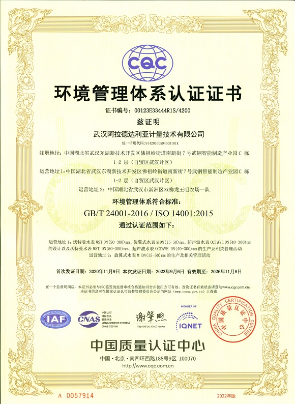 环境管理体系认证证书ISO14001
